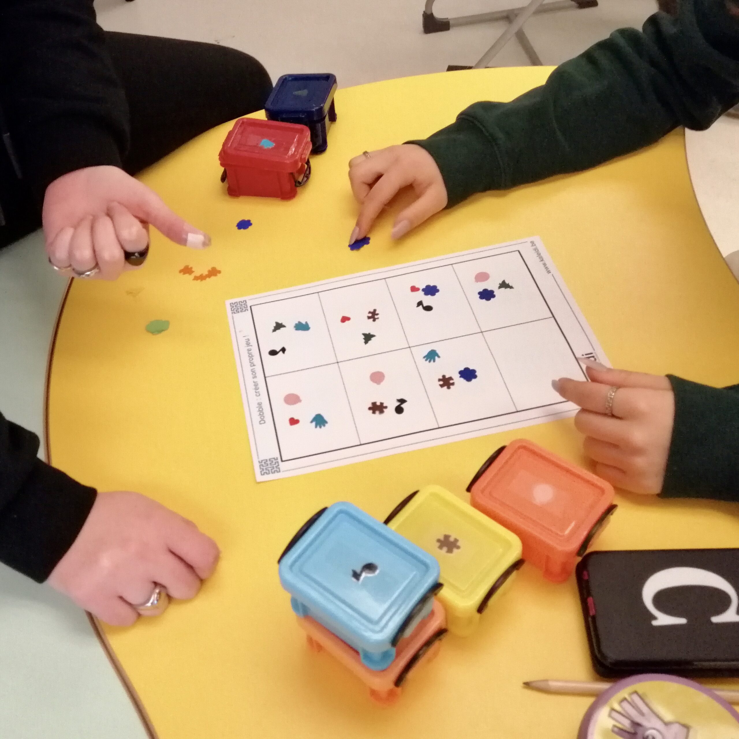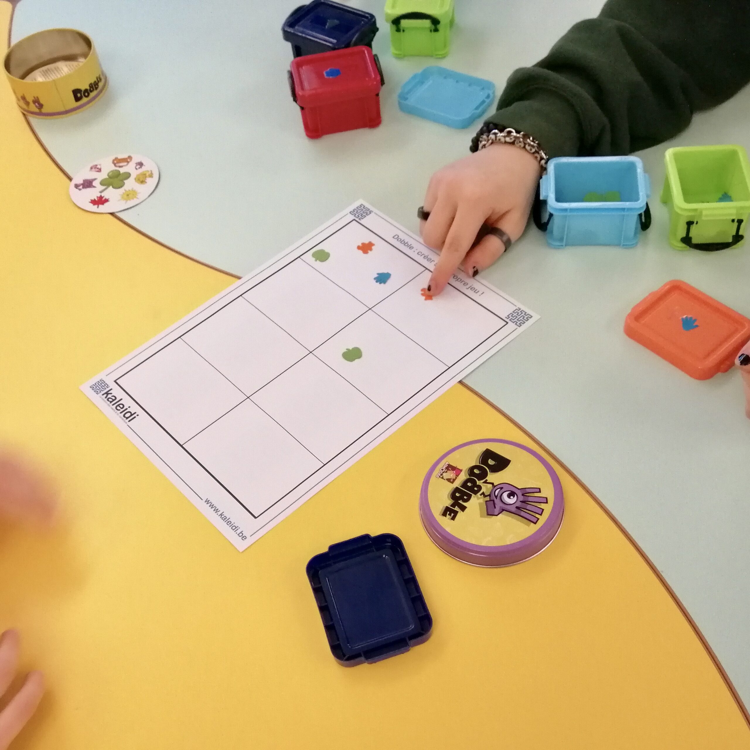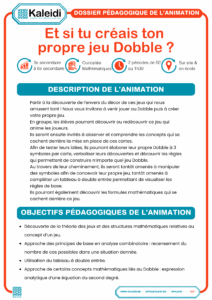 Afin de tester leurs idées, ils pourront élaborer leur propre Dobble à 3 symboles par carte, verbaliser leurs découvertes et découvrir les règles qui permettent de construire n’importe quel jeu Dobble.